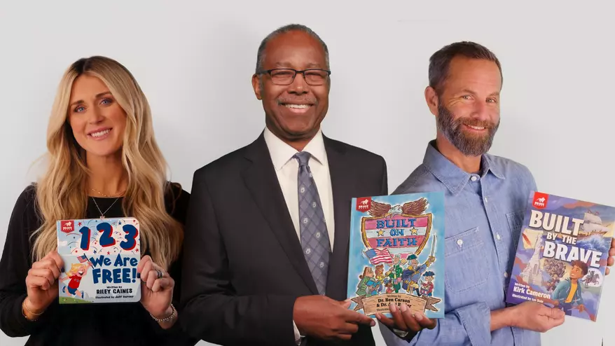 ブレイブ・ブックスは2026年3月23日、建国250周年を記念して、保守派の指導者である(左から)ライリー・ゲインズ、ベン・カーソン、カーク・キャメロンによる児童書セット『アメリカ・ウィンス・バンドル』を発売した。このセットは、アメリカの建国と偉業を描いた物語を収録している。(ブレイブ・ブックス提供写真)